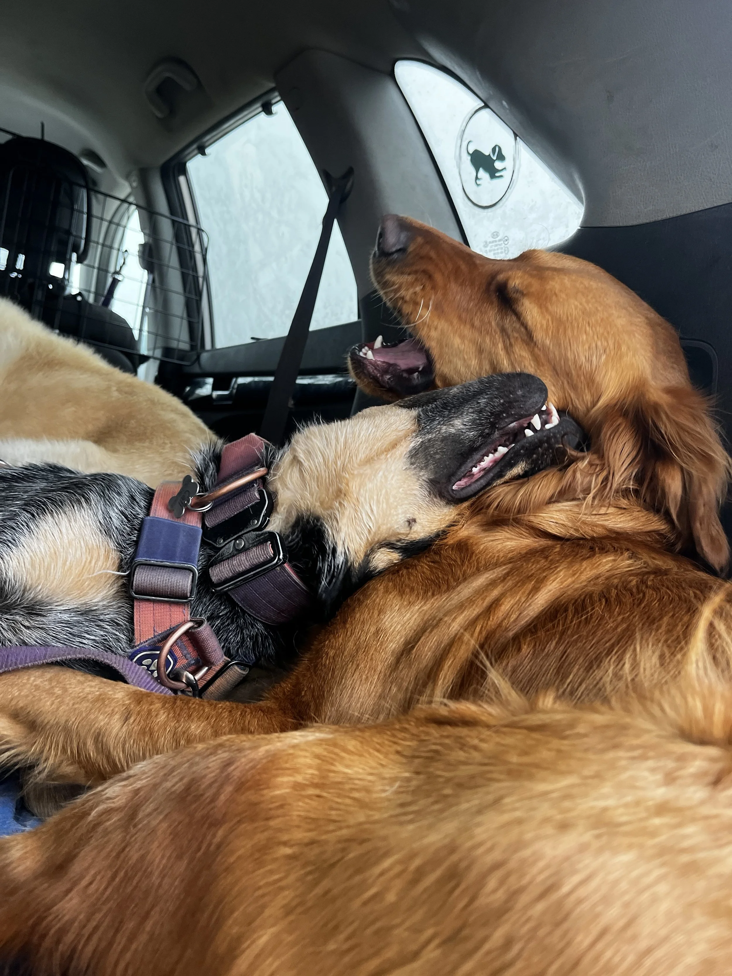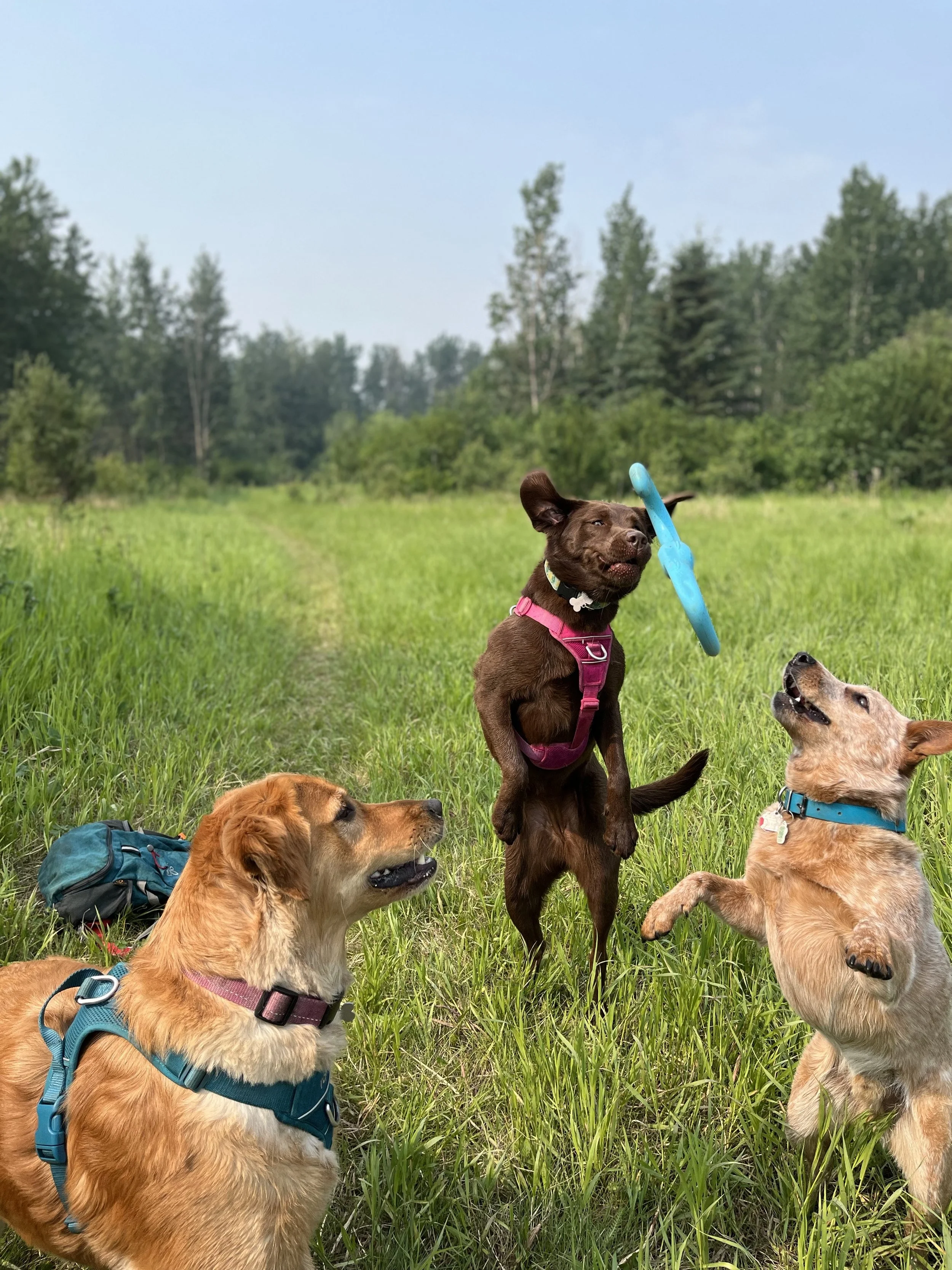 Dog’s with zero recall skills can start in the small groups to learn recall and practice staying engaged around other dogs. They’ll work on long lines or leashes at first for safety and control. Over time, as they build reliable recall and confidence, they can transition into the large pack walks when they’re ready.