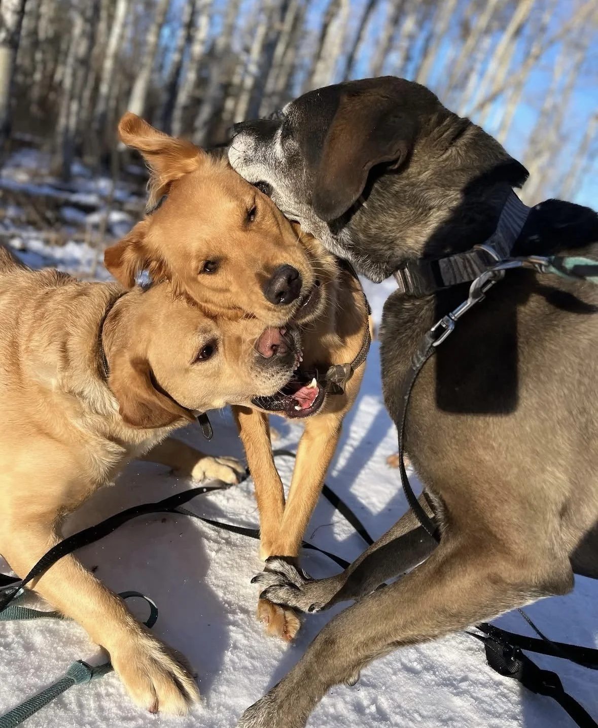 A: Our groups are intentionally kept small usually 3 to 5 dogs to ensure safe, positive interactions and plenty of one on one attention for each dog